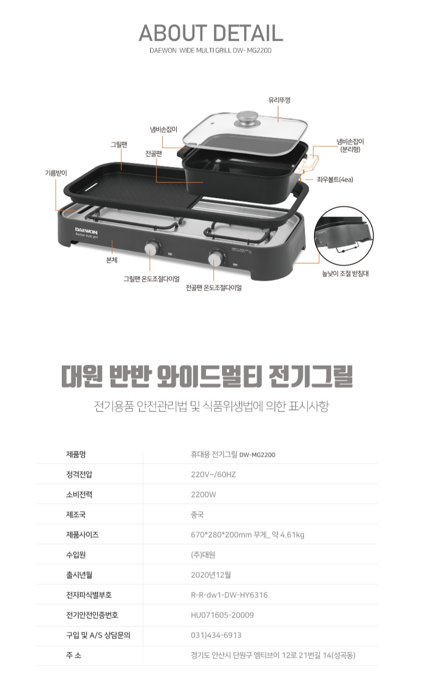 ❤️ BẾP LẨU NƯỚNG DAEWON DW-MG2200 CÔNG SUẤT MAX 2200W ❤️