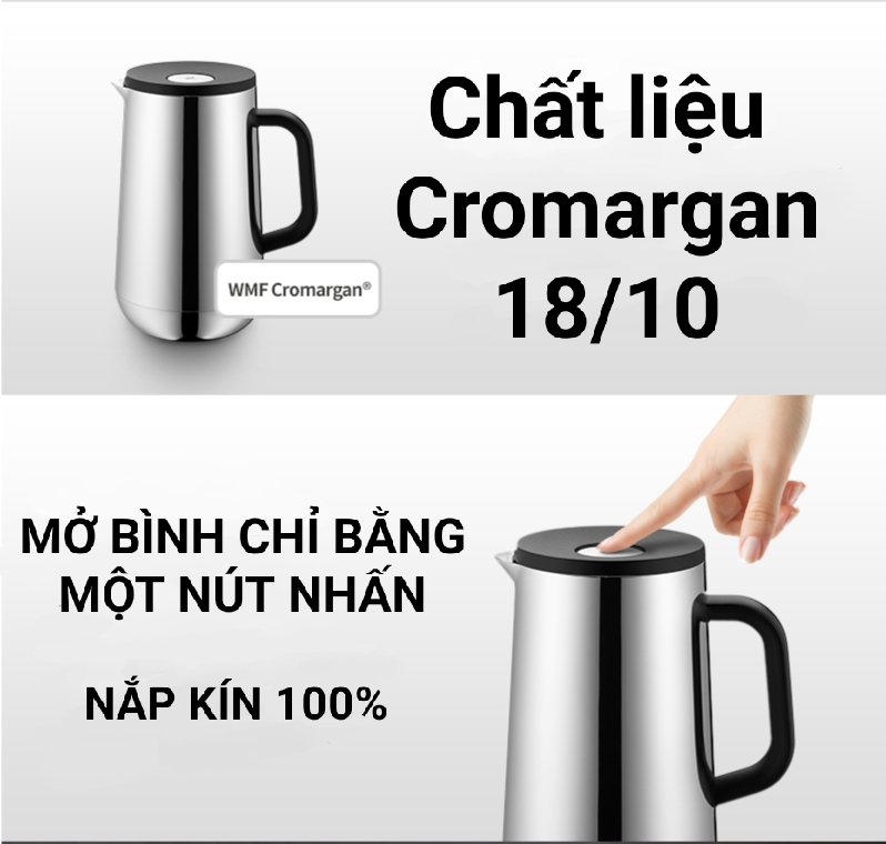 ✔️ Bình giữ nhiệt cầm tay WMF được sản xuất bằng chất liệu Cromargan 18/10, nhựa cao cấp, silicon, thủy tinh, chỉ cần xoay nắp là bình đã sẵn sàng, nắp vặn chắc khít đảm bảo bình có khả năng chống rò rỉ 100%.