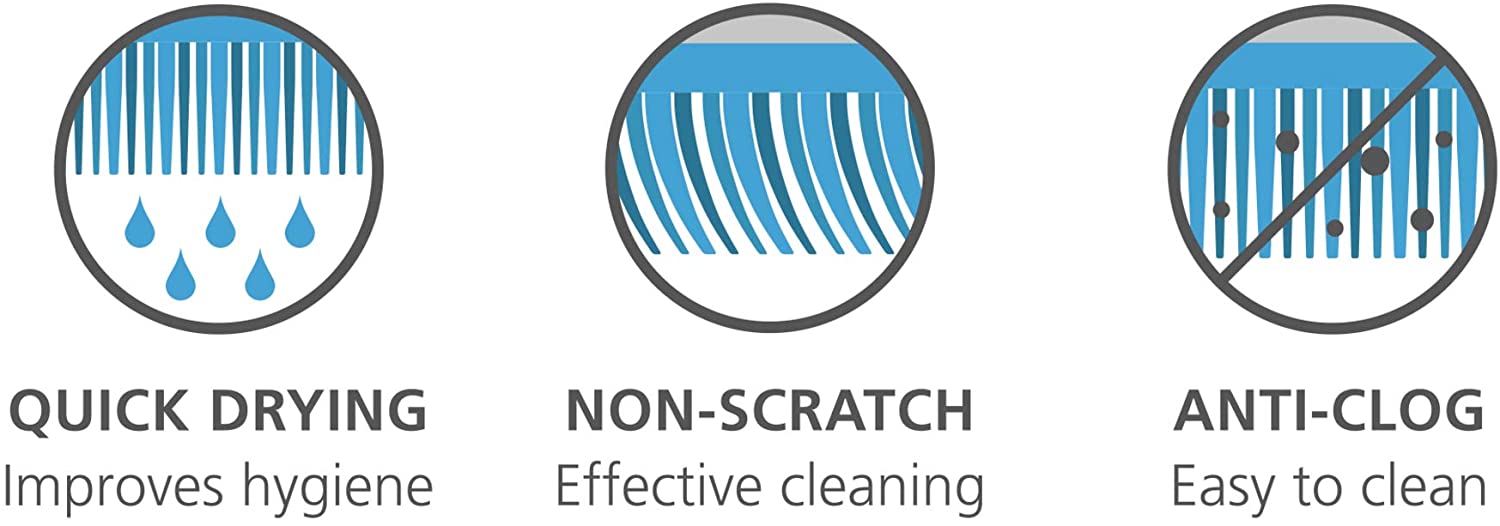 Bàn chải, bọt biển và bàn chải thông thường giữ lại nước và bụi bẩn, gây ra vi khuẩn và mùi hôi. Bộ bàn chải Joseph Joseph CleanTech 85159 cải tiến có đầu lông bằng polyme tiên tiến giúp thoát nước tốt và khô nhanh chóng. Bền và thuận tiện để loại bỏ vết dính và các vết bẩn khác. Rửa sạch và vệ sinh dễ dàng sau khi sử dụng để đảm bảo vệ sinh. Miếng chà có thể được sử dụng cho bề mặt mềm và cứng tùy thuộc vào lần rửa. Sẽ không làm hỏng dụng cụ nấu nướng chống dính.