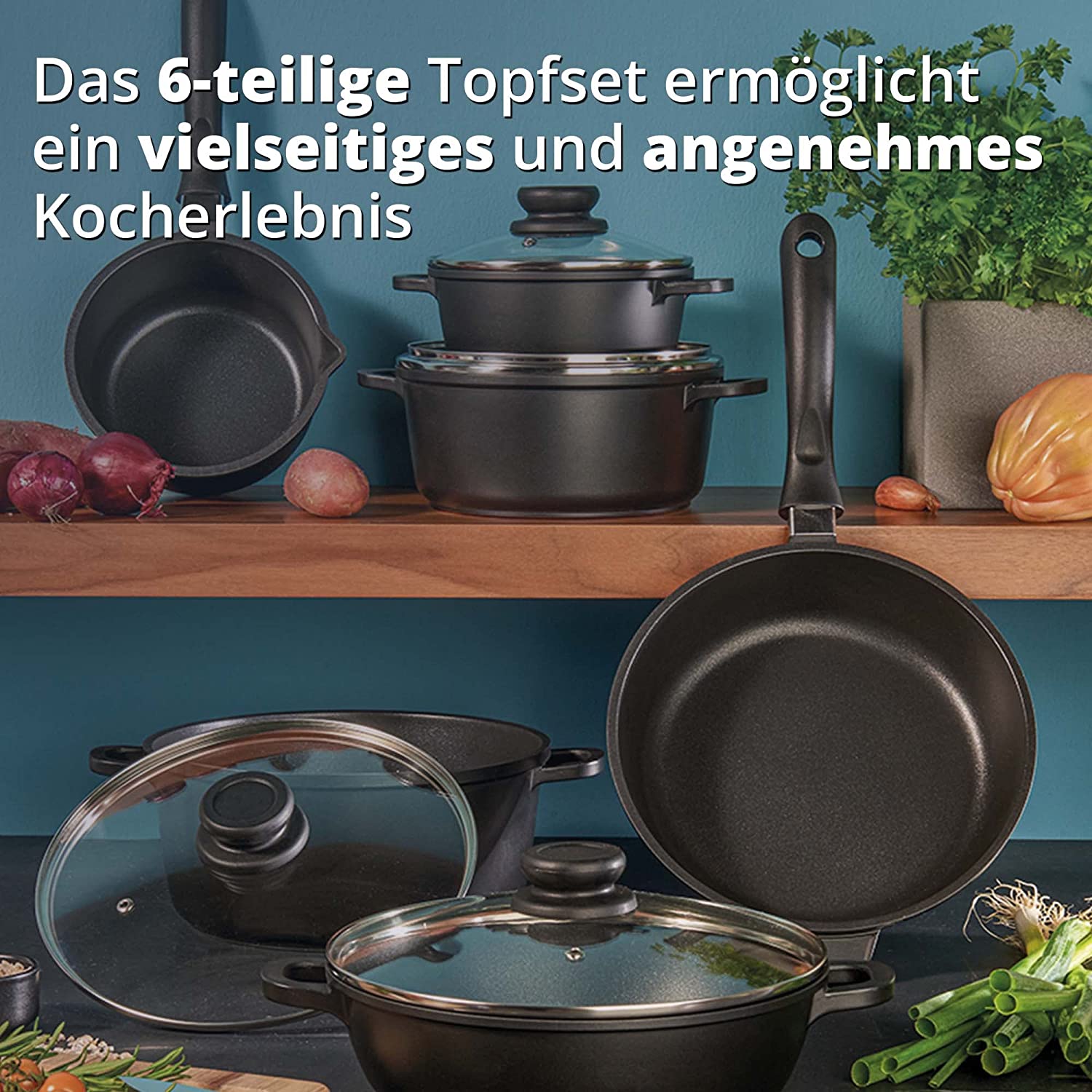 ⚡ Set nồi gồm 6 món: 2 nồi Ø16cm, 1 nồi Ø20cm, 1 nồi Ø24cm, 2 chảo Ø24cm