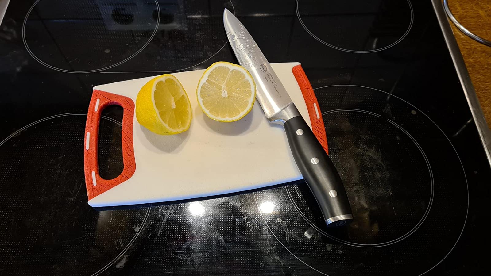 🔪 Được làm từ thép đặc biệt có lưỡi X50CrMOV15 chất lượng cao, bền và tay cầm bằng polyoxymethylene POM màu đen, sang trọng, con dao thực sự là một vật bắt mắt trong bất kỳ nhà bếp nào.