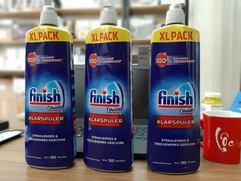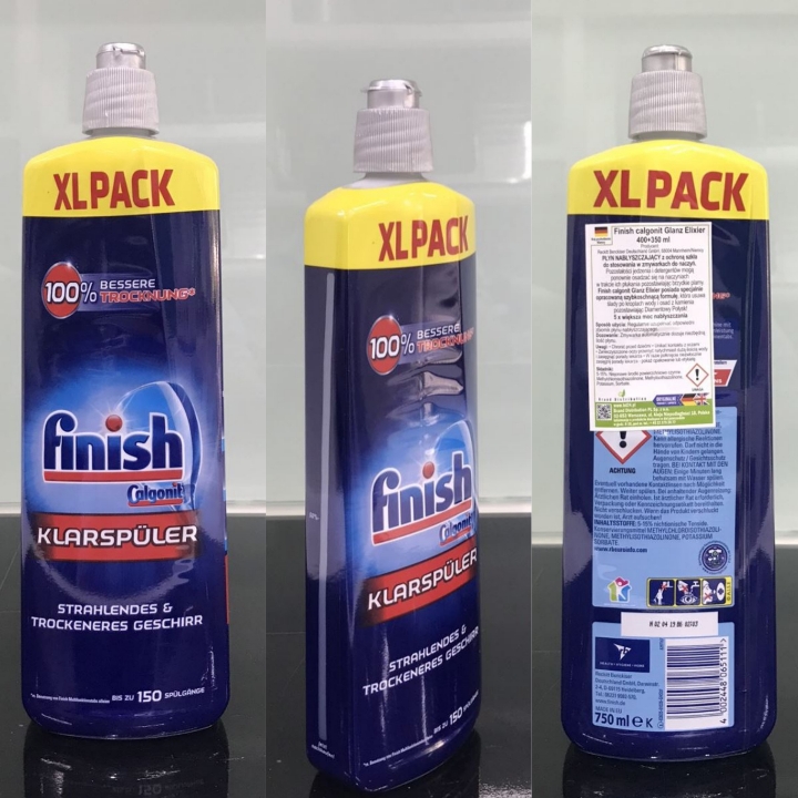 Nước làm bóng Finish 750ml Finish là một nhãn hiệu sản phẩm rửa bát tại CHLB Đức, với lịch sử tồn tại lâu năm trên các thị trường châu Âu, lấn dần sang châu Á và nhanh chóng thích nghi cũng như nhận được sự ủng hộ và tin tưởng của các bà nội trợ, finish càng khẳng định được vị trí thống trị của mình trên thị trường sản phẩm rửa bát. Dung dịch nước làm bóng Finish nằm trong bộ ba sản phẩm viên rửa chuyên dụng cần thiết của Finish: Muối rửa bát Finish, Viên rửa bát Finish Quantum, Dung dịch làm bóng Finish. Ngoài khả năng làm bóng, chống nước bám trên bề mặt rửa, nước làm bóng finish có tính năng hỗ trợ sấy khô nhanh tốt hơn so với loại nước bóng thông thường. Nước rửa Finish loại bỏ cặn canxi, ngăn ngừa cặn trắng bám mốc trên đồ thủy tinh và tráng men.