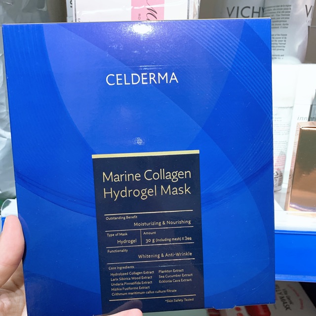 Mặt Nạ Celderma Marine Collagen Hydrogen Mask là dòng mặt nạ mới nhất của Celderma. Đây là dòng mặt nạ collagen biển đậm đặc, hàm lượng cao giúp củng cố hàng rào bảo vệ da và làm đầy độ đàn hồi.