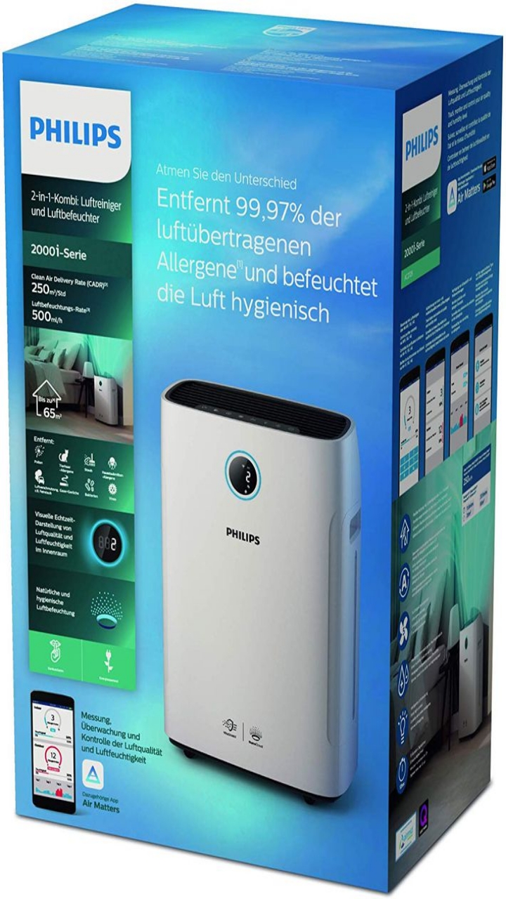 Philips AC2729 kiểm soát không khí của bạn – bất cứ nơi đâu, bất cứ lúc nào. Máy lọc không khí và tạo ẩm 2 trong 1 này chống lại các chất gây dị ứng, chống không khí khô, khí độc hại, các hạt, vi khuẩn và vi rút bằng cách kết hợp hai chức năng của nó trong các phòng có kích thước lên tới 65 mét vuông.