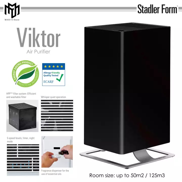 🩸 Máy lọc không khí Stadler Form Viktor cao cấp với công suất 10 - 38W nhanh chóng, phù hợp với phòng có kích thước lên tới 50 m2 / 125 m3 giúp loại bỏ các tác nhân gây dị ứng, phấn hoa, virus, bụi bẩn, lông vật nuôi, khói và mùi khó chịu. Stadler Form Viktor được trang bị 5 mức tốc độ