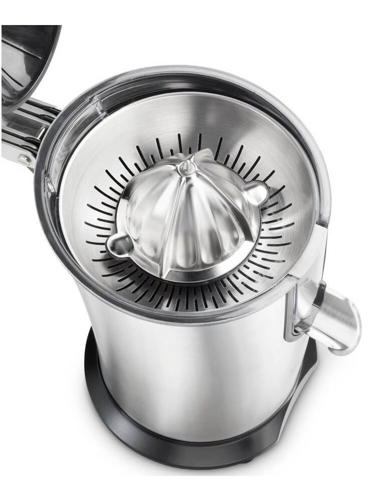 👉 Thân bằng thép không gỉ sang trọng, nắp bằng nhựa trong suốt, khay vắt bằng inox… Máy tự động hoạt động/ dừng, chân đế chống trơn trượt, cần gạt đòn bảy với tay cầm mềm. Caso CP330 Pro dễ dàng tháo dời thành các bộ phận riêng lẻ để làm sạch và an toàn khi rửa sạch với máy rửa chén. Đầu vắt đủ lớn cùng với đường kính khay lên tới 20cm thích hợp cho cả cam quýt lớn, bưởi…