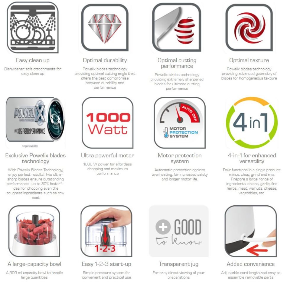 – Công suất cực cao (1000w) giúp xay nhuyễn thực phẩm dễ dàng, tiết kiệm thời gian và điện năng tiêu thụ.