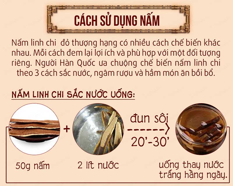 Trên đây là một số cách chế biến nấm linh chi tốt cho cả sức khỏe và sắc đẹp của người sử dụng. Người tiêu dùng có nhu cầu nên tham khảo thêm một số sản phẩm nấm linh chi Hàn Quốc để đảm bảo hiệu quả chất lượng sản phẩm