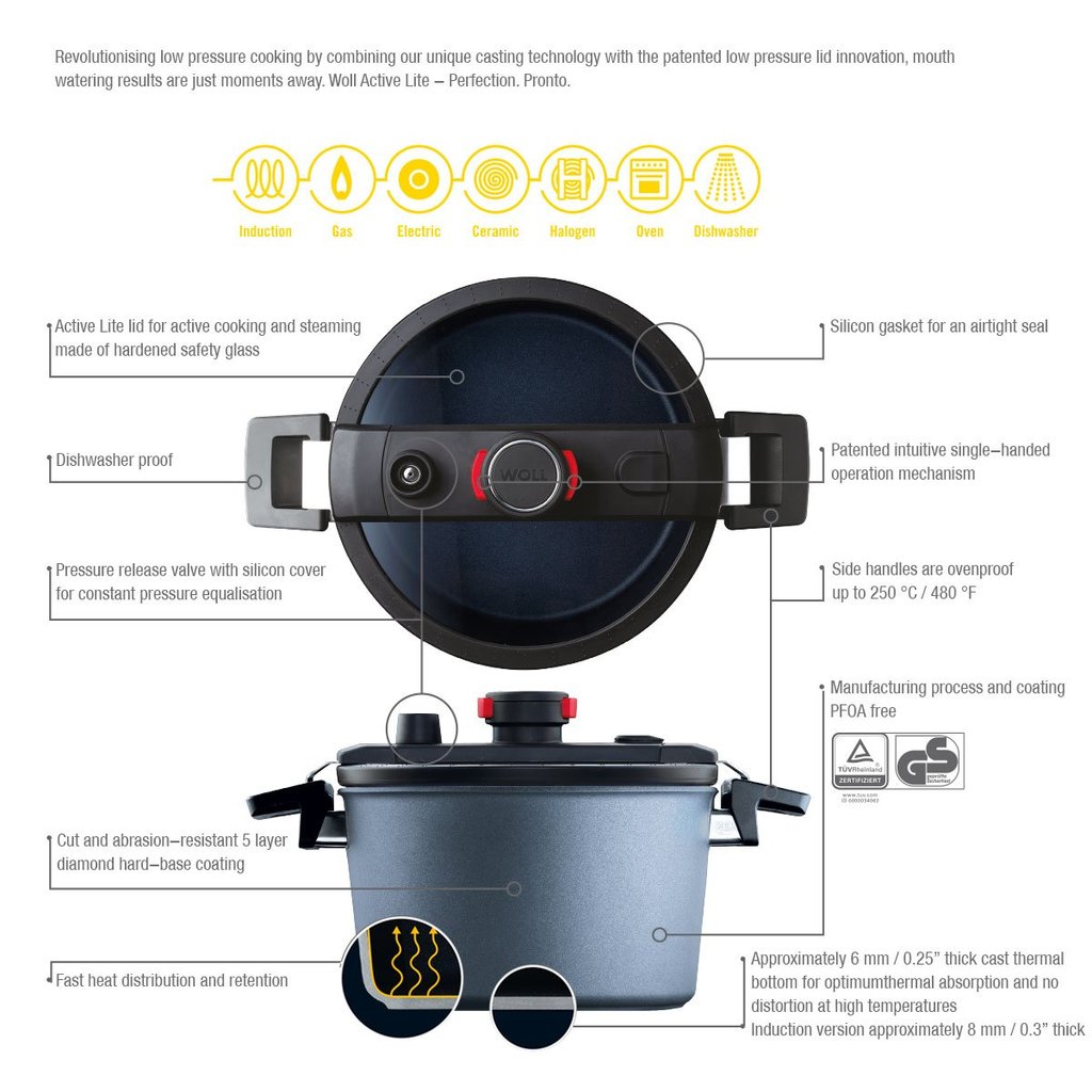 🇩🇪 NỒI ÁP SUẤT WOLL DIAMOND ACTIVE LITE POTS WITH SILICONE INSERT 20cm 🇩🇪