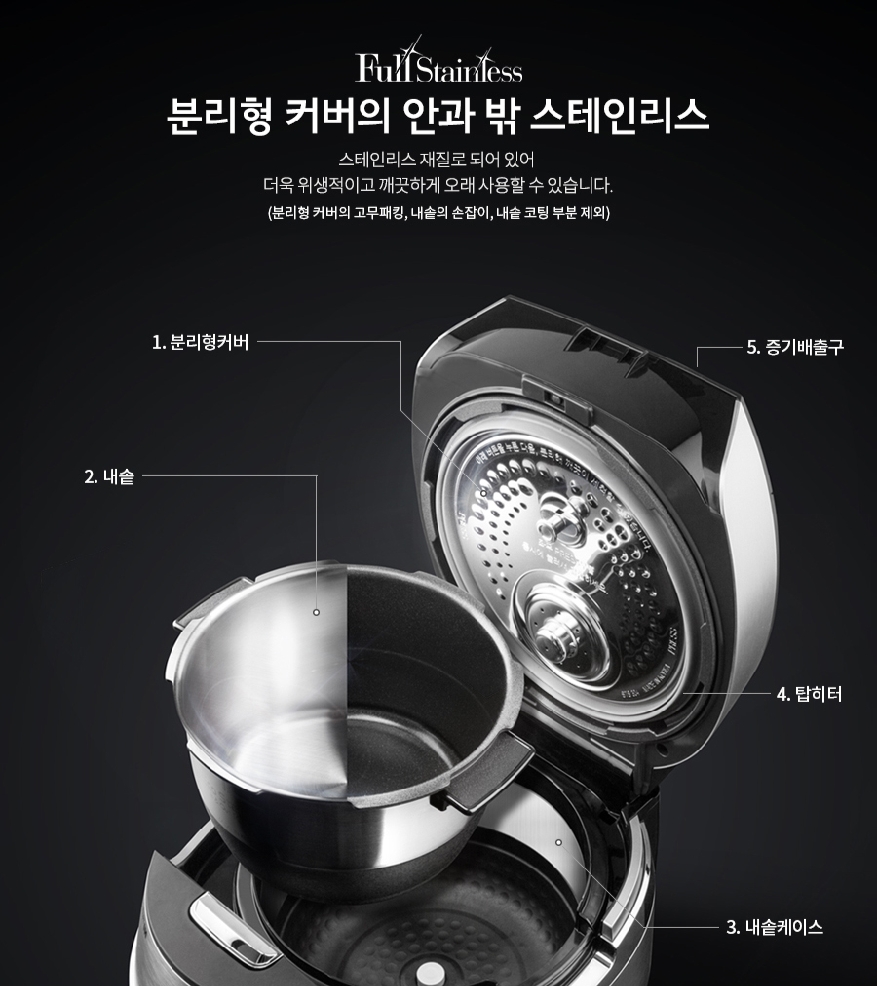 - Nắp vung sử dụng công nghệ Full Stainless OneTouch vật liệu chịu áp suất cao không gỉ, có thể tháo rời vệ sinh thay rửa dễ dàng và linh hoạt