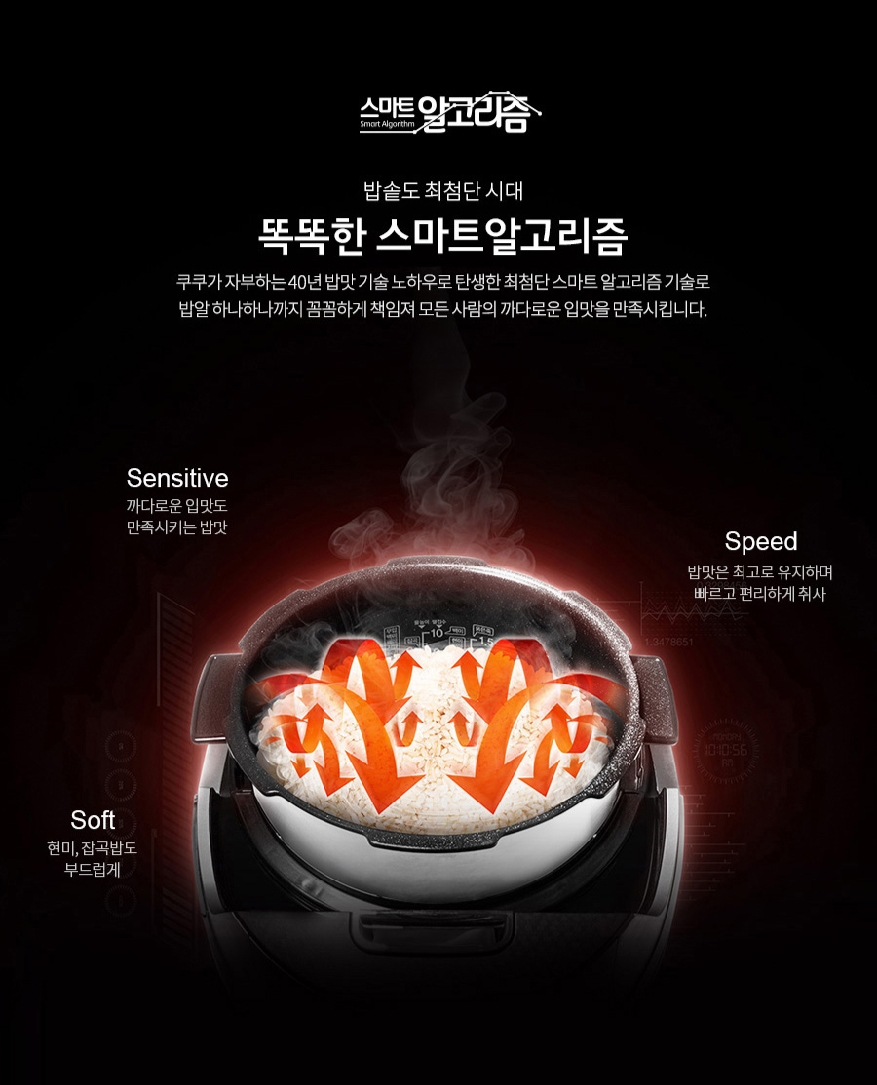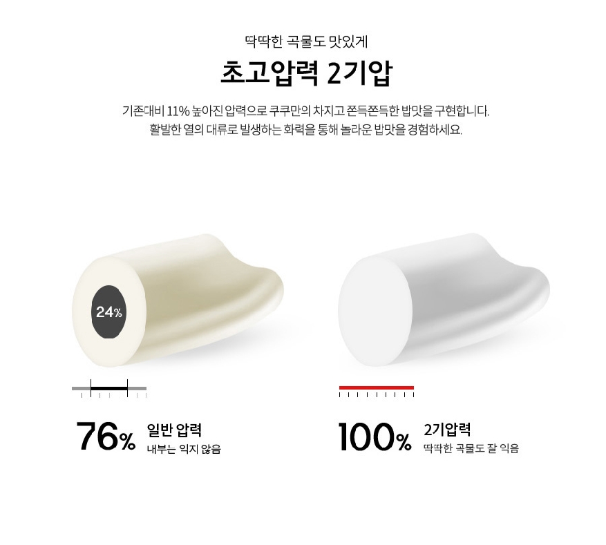 - Công nghệ nấu Áp suất cao tần IH (2 atmospheric pressure) giúp lượng nhiệt gia tăng ổn định và đều khắp nồi giúp hạt gạo chín đều từ mọi mặt, sâu lõi hạt gao ra ngoài, tạo ra chất lượng cơm chín kỹ, dền cơm và hương vị thơm ngon hơn.