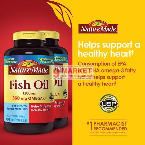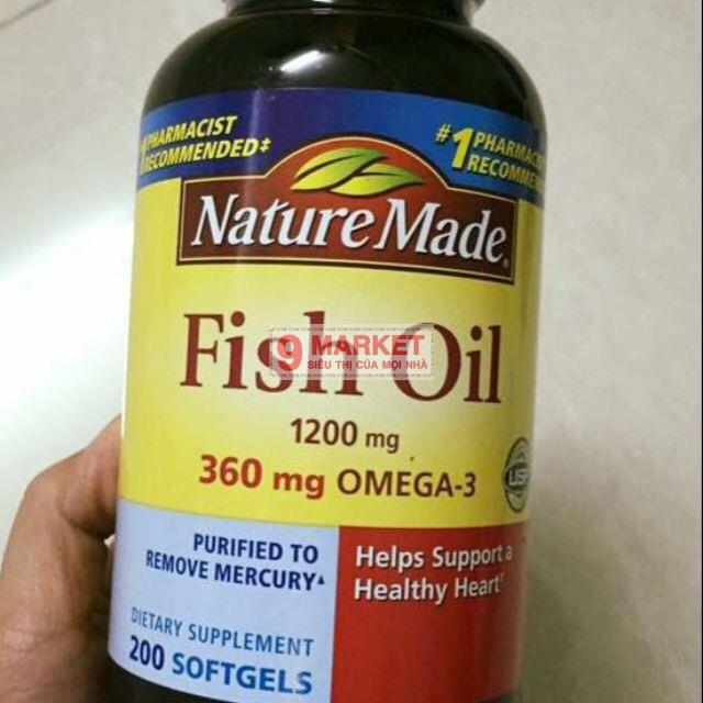 - Nature Made Fish Oil 1200 mg 200 viên là sản phẩm được sản xuất bởi Nature Made - Mỹ giúp hỗ trợ sức khỏe cho mọi đối tượng.