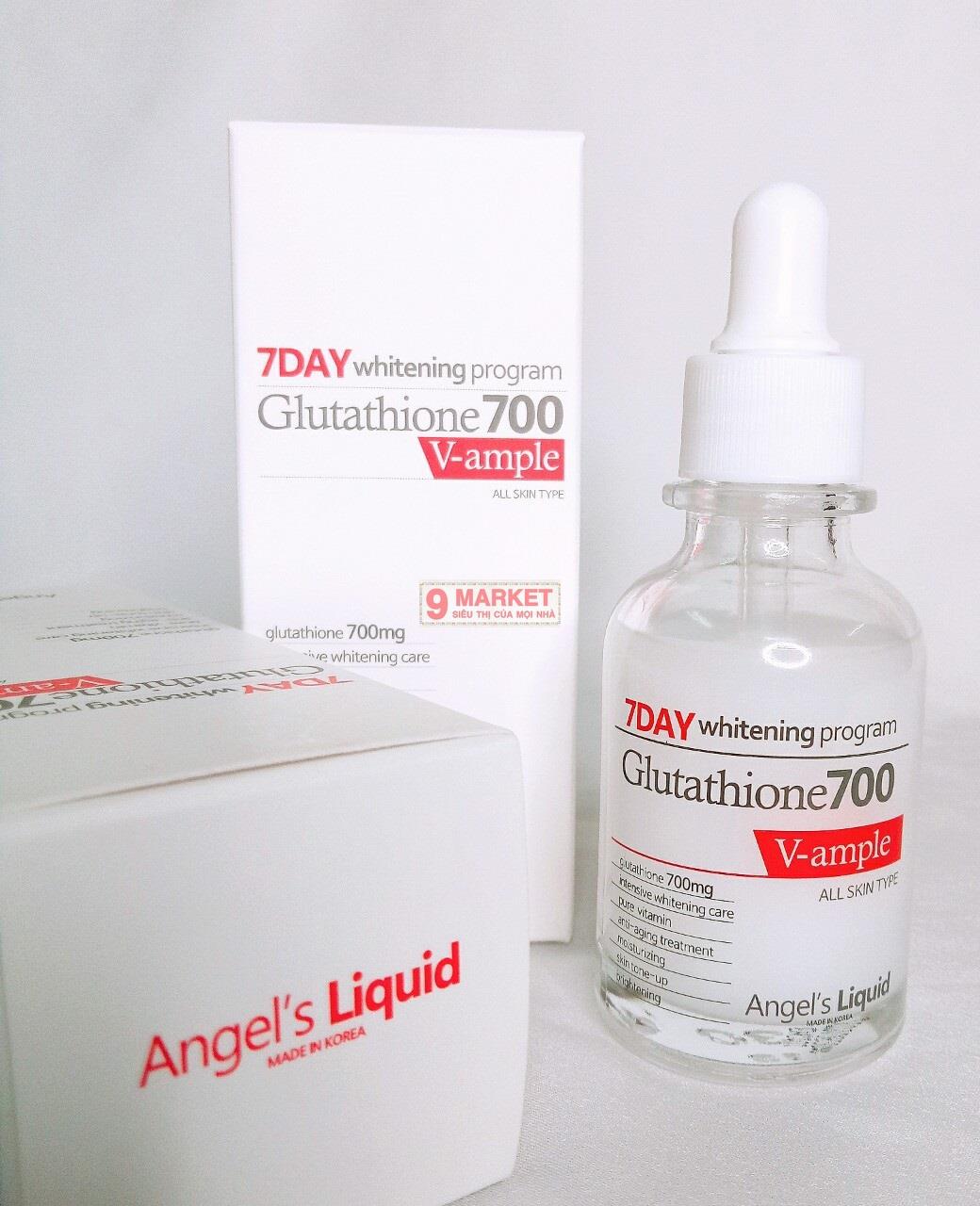 🌈Tinh Chất Trắng Mịn Se Lỗ Chân Lông Angel's Liquid Glutathione 700 V Ampoule là chai tinh chất đang được chị em săn lùng. Tinh Chất Trắng Mịn Se Lỗ Chân Lông Angel's Liquid Glutathione 700 V Ampoule là sản phẩm dưỡng da với hàm lượng cao Glutathione (700mg) giúp làm trắng da nhanh chóng, an toàn và hiệu quả hơn so với các sản phẩm thông thường.